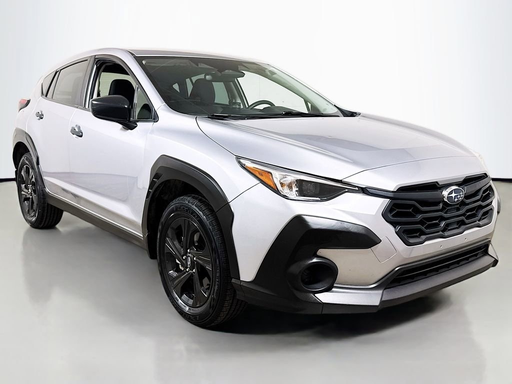 2024 Subaru Crosstrek 3.90 Axle Ratio, 4 Speakers, 4-Wheel Disc Brakes, ABS brakes, Air Conditioning, All-Weather Floor Liners, Alloy wheels, AM/FM radio: SiriusXM, Anti-whiplash front head restraints, Auto High-beam Headlights, Automatic temperature control, Brake assist, Bumpers: body-color, Cargo Tray, Cloth Upholstery, Driver door bin, Driver vanity mirror, Dual front impact airbags, Dual front side impact airbags, Electronic Stability Control, Exterior Parking Camera Rear, Four wheel independent suspension, Front anti-roll bar, Front Bucket Seats, Front Center Armrest, Front dual zone A/C, Front reading lights, Fully automatic headlights, Illuminated entry, Knee airbag, Low tire pressure warning, Occupant sensing airbag, Outside temperature display, Overhead airbag, Overhead console, Panic alarm, Passenger door bin, Passenger vanity mirror, Power door mirrors, Power steering, Power windows, Radio data system, Radio: Subaru STARLINK Dual 7.0 Multimedia System, Rear anti-roll bar, Rear window defroster, Rear window wiper, Remote keyless entry, Security system, Speed control, Speed-sensing steering, Splash Guards, Split folding rear seat, Spoiler, Standard Model, STARLINK/Apple CarPlay/Android Auto, Steering wheel mounted audio controls, Tachometer, Telescoping steering wheel, Tilt steering wheel, Traction control, Trip computer, Variably intermittent wipers, Wheels: 17 x 7.0J Dark Gray Aluminum Alloy.